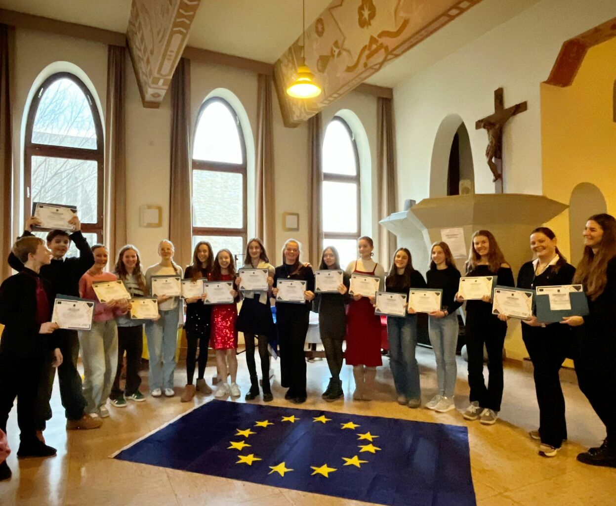 Nachdem wir den Podcast fertiggestellt hatten, auf den wir sehr stolz waren, gab es freitags eine Nikolausfeier. Dort aßen wir von unserem selbst gemachten Buffet, tanzten und lachten viel. Es war wirklich schön, aber heiß. Am Ende bekamen wir unsere Zertifikate. Das war cool, da wir einzeln vorgelesen wurden und dann das Zertifikat übergeben bekommen haben.
